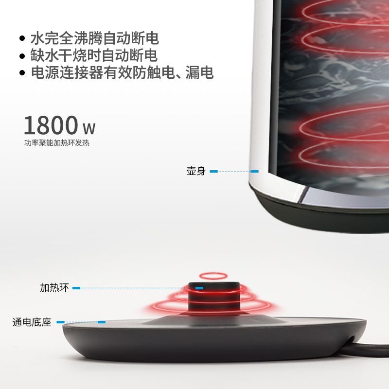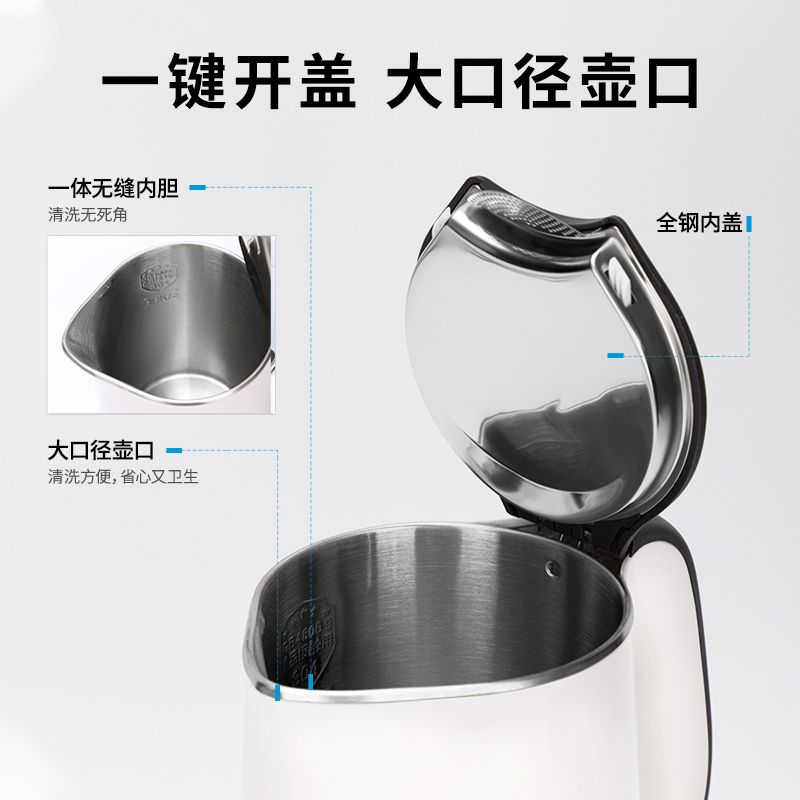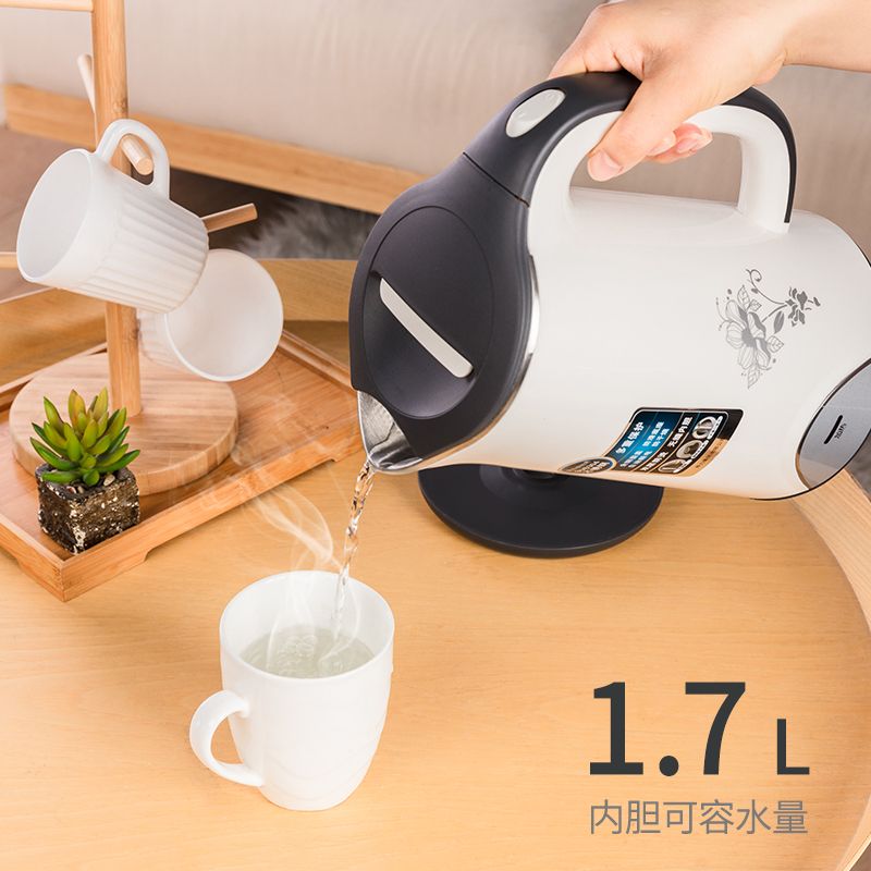 得力0766電熱水壺(白+深灰)(個(gè))1.7L外塑內(nèi)鋼 燒水壺