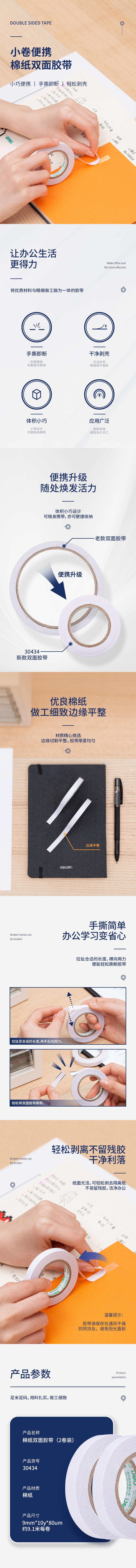 得力小卷芯棉紙雙面膠帶9mm*10y 30434 30435 30436 30437