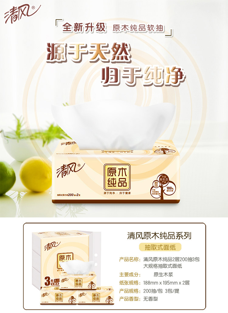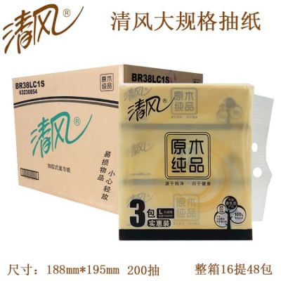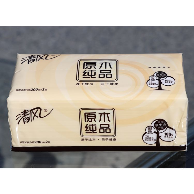 清風 雙層原木大規(guī)格塑包面紙-200抽 BR38LC1S抽紙 清風抽紙