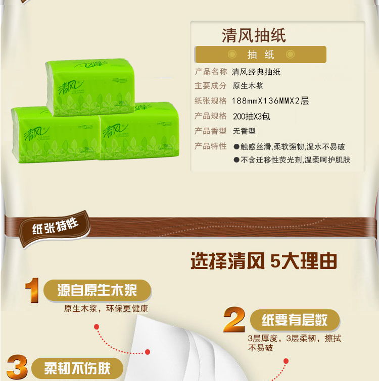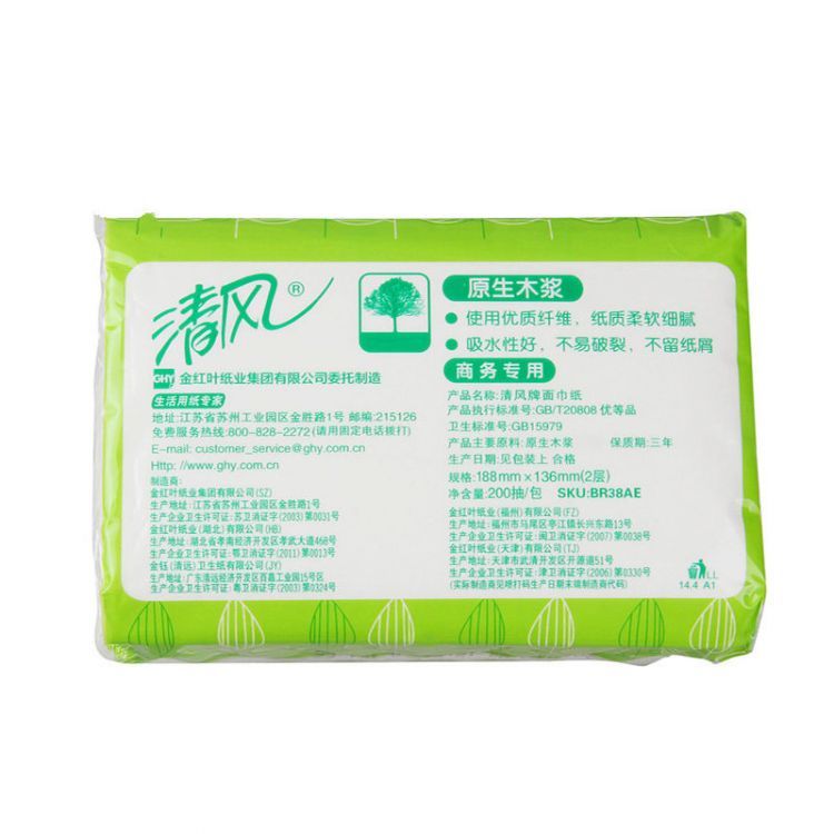 清風(fēng) 清風(fēng)抽紙 軟抽 BR38AE雙層塑包面紙-200抽