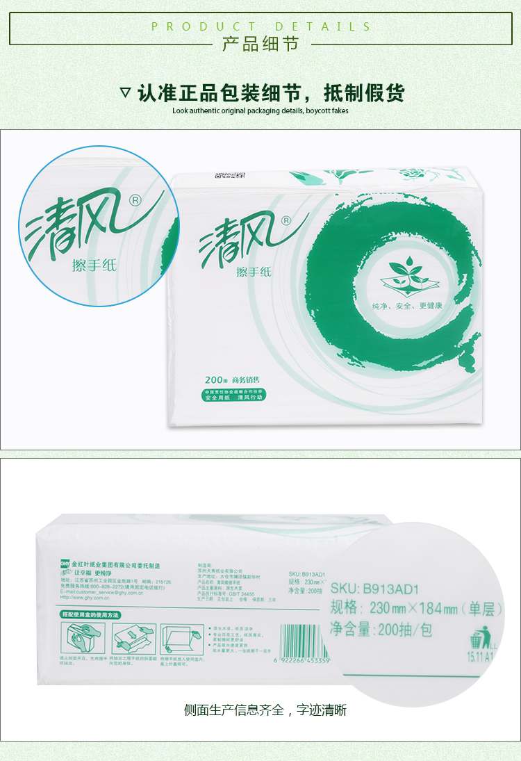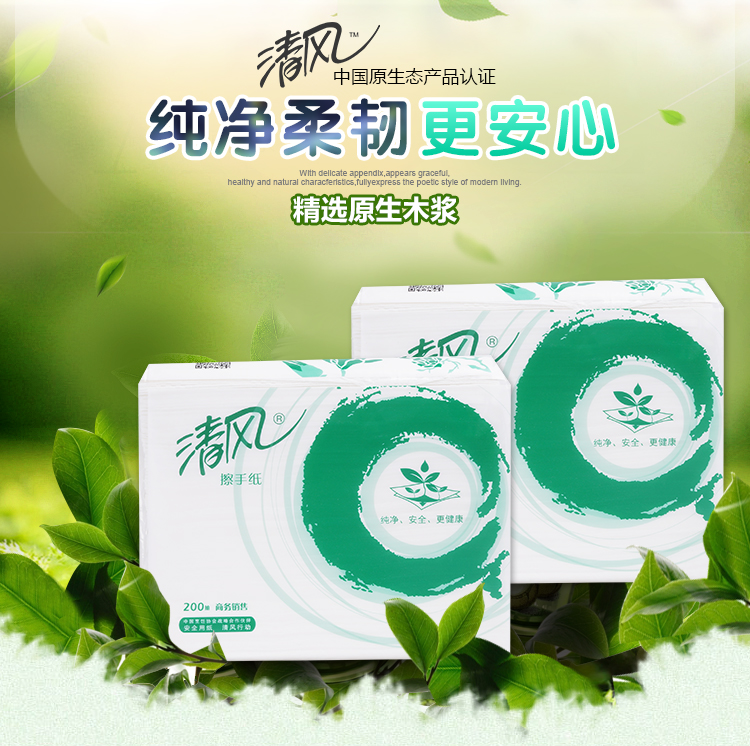 清風(fēng) B913AD1單層三折擦手紙-200張(平口預(yù)制袋) 紙巾