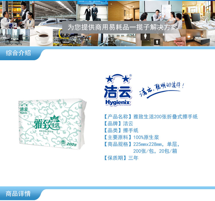 潔云(Hygienix) 156303雅致生活單層擦手紙-200張 擦手紙