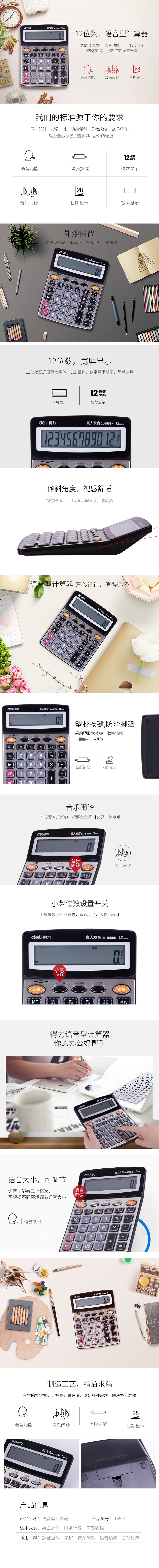 得力1559N語音計(jì)算器(香檳金)