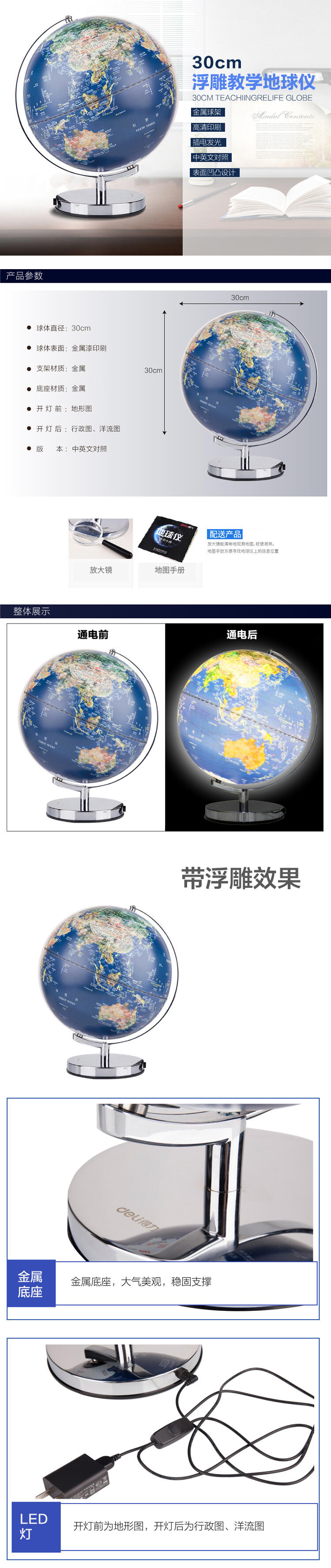 得力2165地球儀30cm(藍色)(臺)