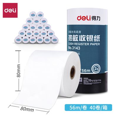 得力3143多瑙河熱敏收銀紙80mm*80mm*56m(白)(2卷/筒)
