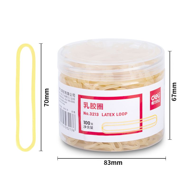 得力3213乳膠圈(微黃)(100g/筒)