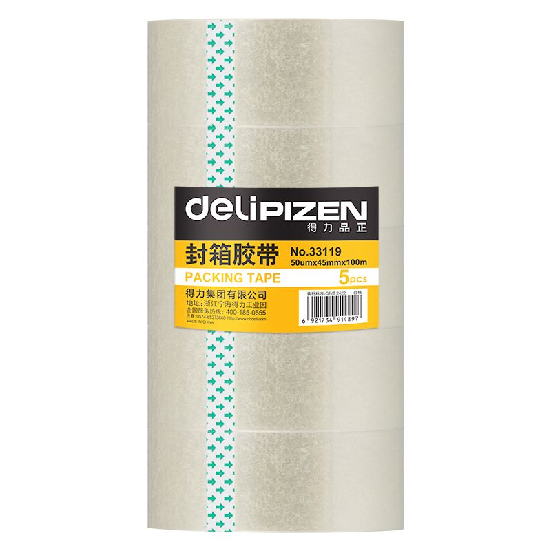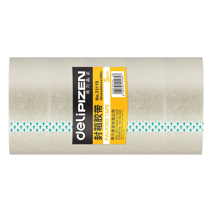 得力品正33119封箱膠帶45mm*100m*50um(透明)(5卷/筒)