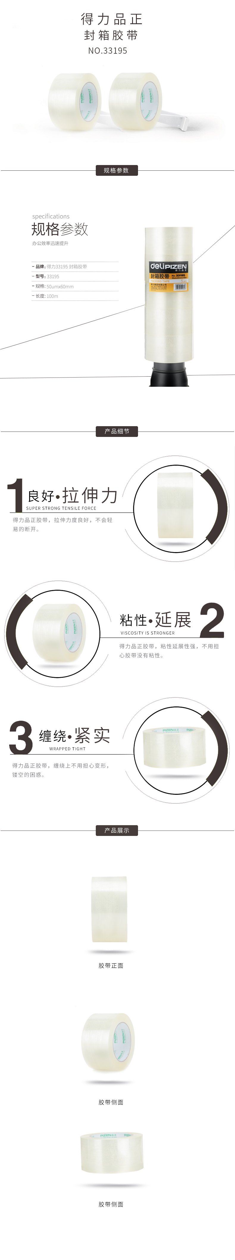 得力品正33195封箱膠帶60mm*100m*50um(透明)(5卷/筒)