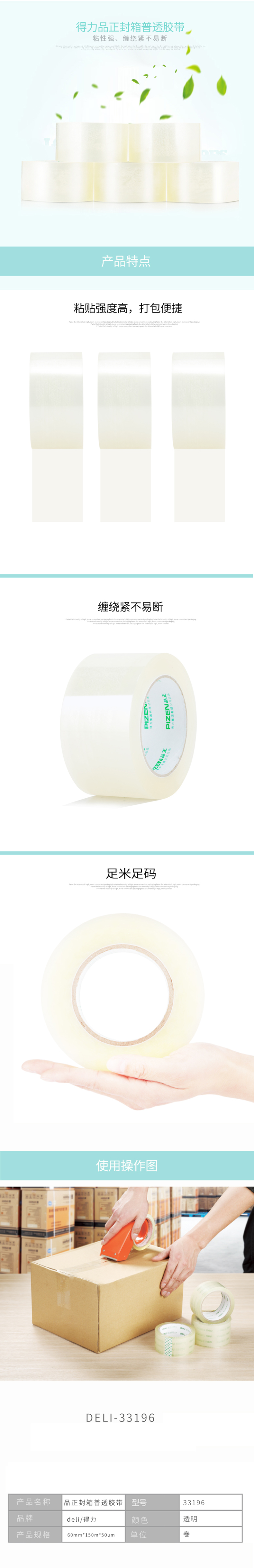 得力品正33196封箱膠帶60mm*150m*50um(透明)(5卷/筒)