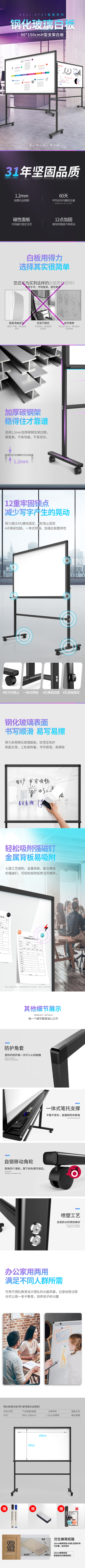 得力8737_H型架磁性玻璃白板900*1500mm(黑色)(塊)