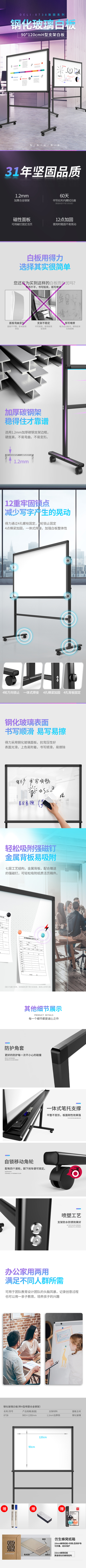 得力8738_H型架磁性玻璃白板900*1200mm(黑色)(塊)