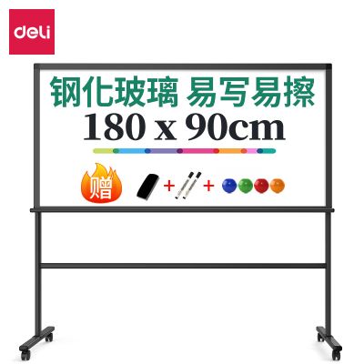 得力8739-H型架磁性玻璃白板1800*900mm(黑色)(塊)