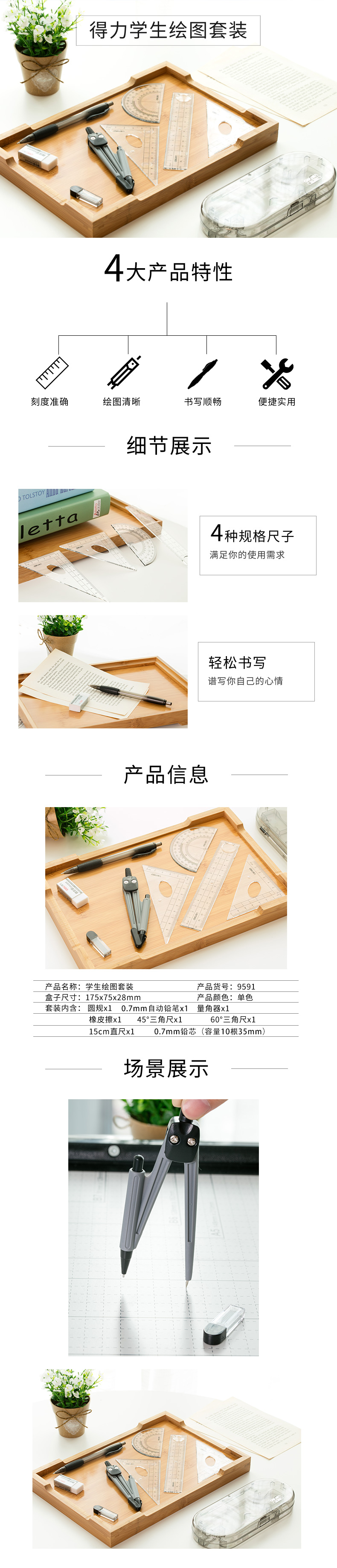 得力9591學(xué)生繪圖套裝(套) 套尺 圓規(guī) 三角尺 直尺