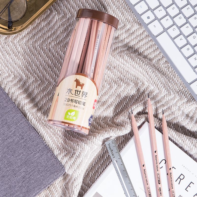 得力S907-2B書寫鉛筆(原木色)(50支/筒)