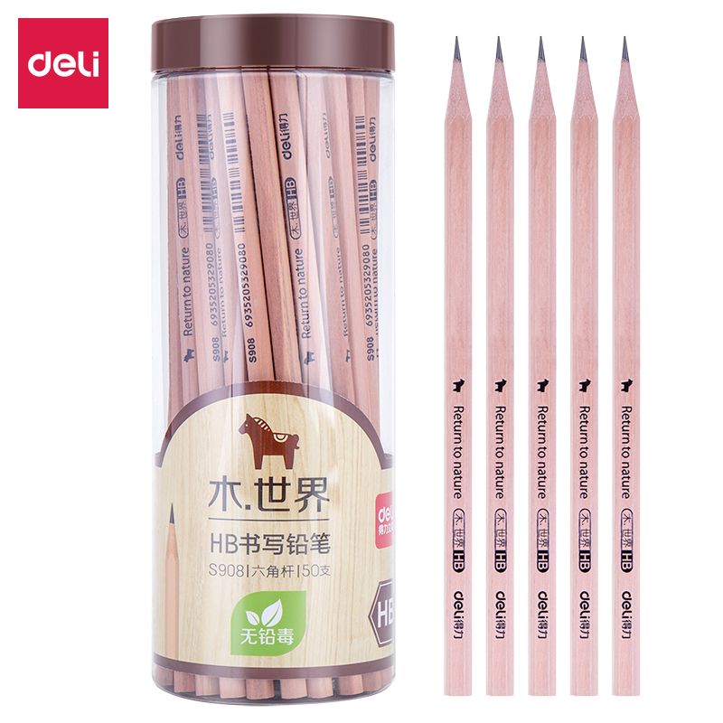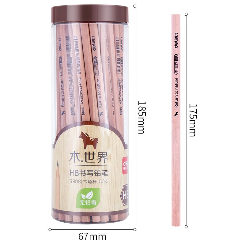 得力S908-HB書寫鉛筆(原木色)(50支/筒)