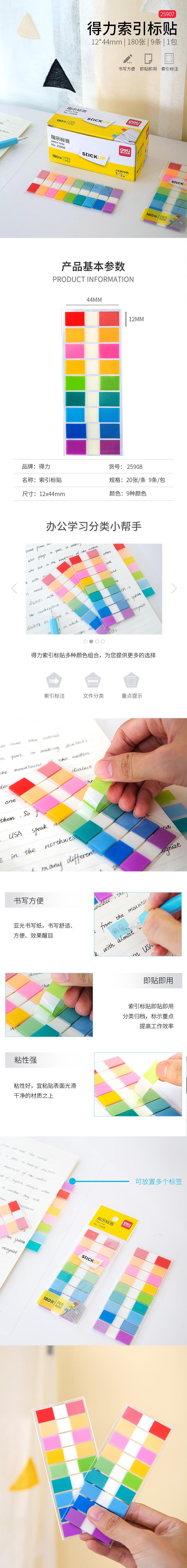 得力(deli) 25908(混色)夾片式指示標貼12x*44mm9條*20張