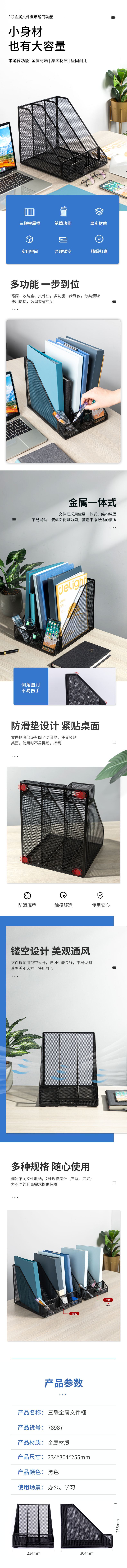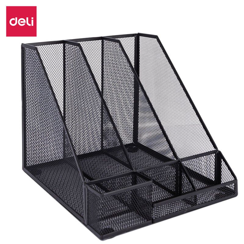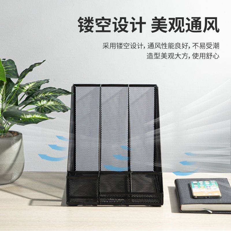 得力78987三聯(lián)金屬網(wǎng)狀文件框帶筆筒(黑)(個)文件欄/文件筐/資料框