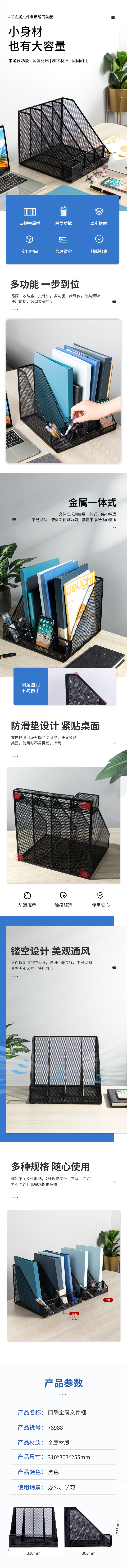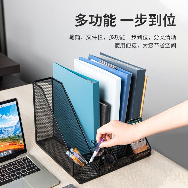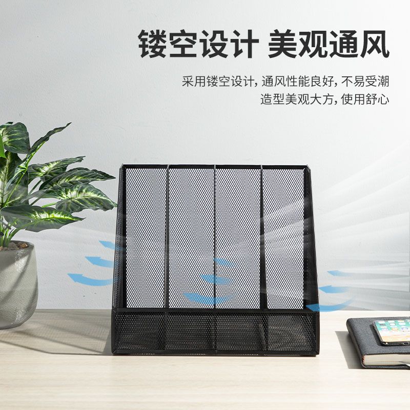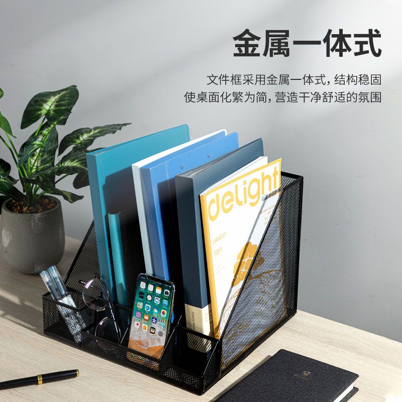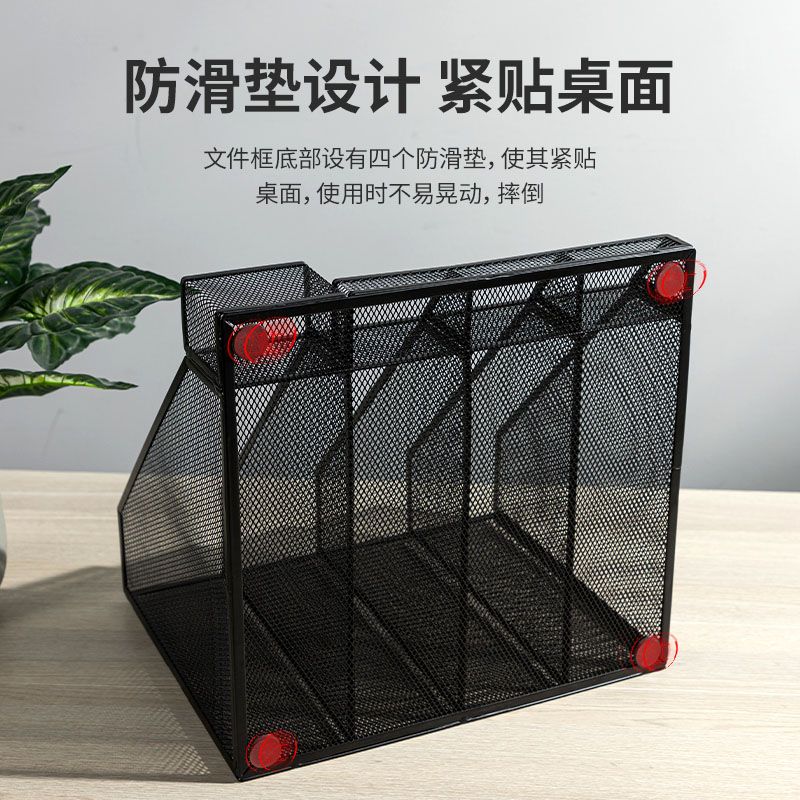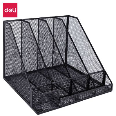 得力78988四聯金屬網狀文件框帶筆筒(黑)(個)文件欄/文件筐/資料框