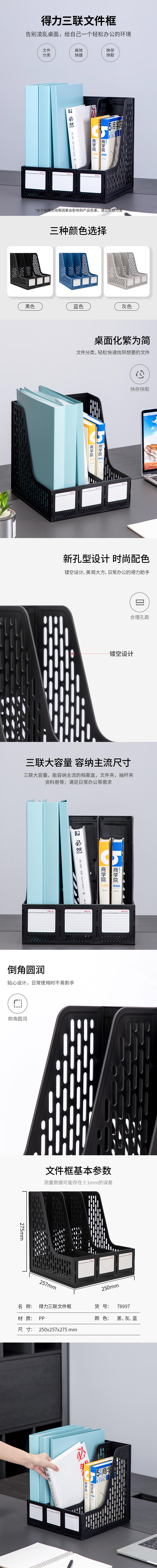 得力78997文件框(黑色)(只)文件欄/文件筐/資料框