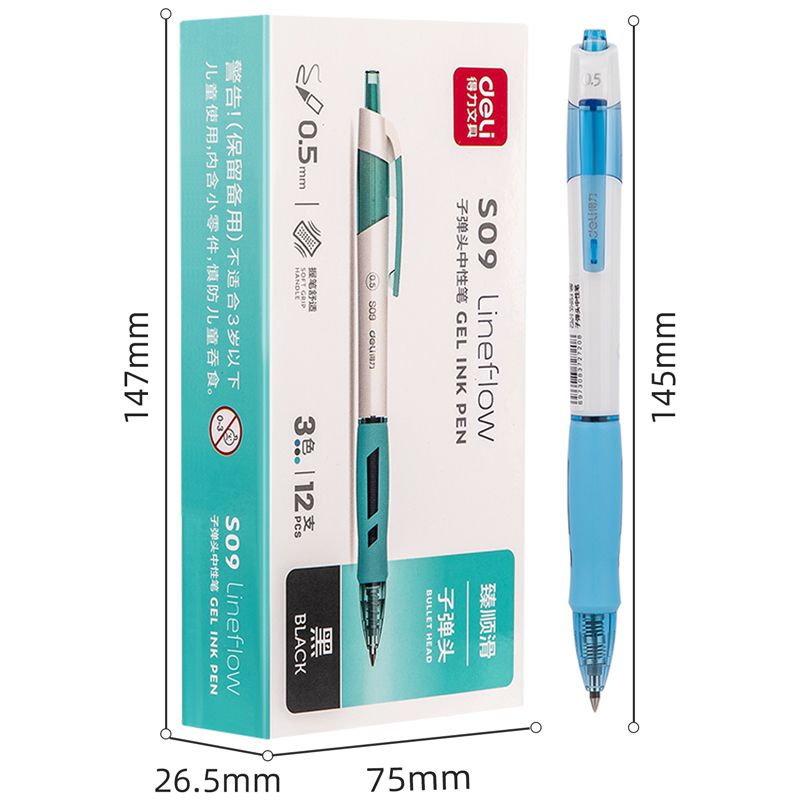 得力S09臻順滑辦公中性筆0.5mm彈簧頭(黑色)(支)