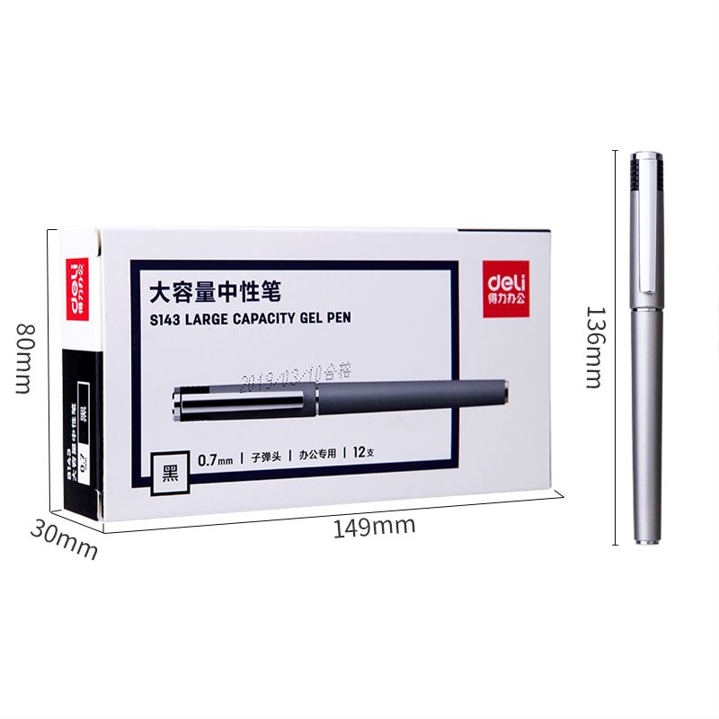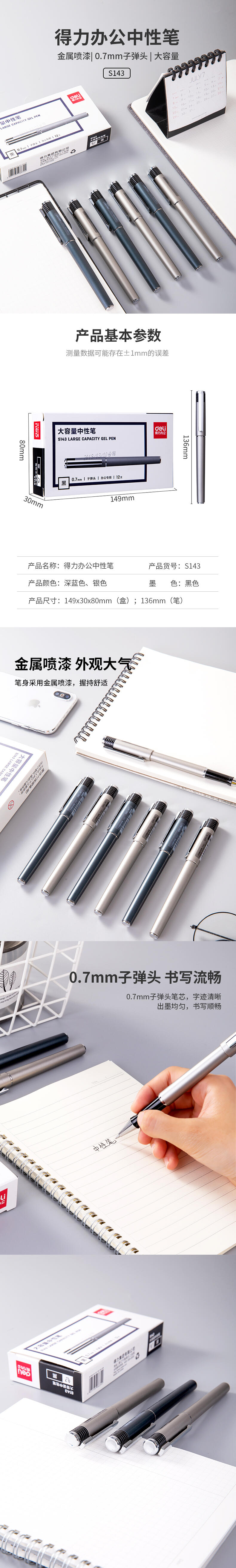 得力S143辦公大容量中性筆0.7mm子彈頭(黑)