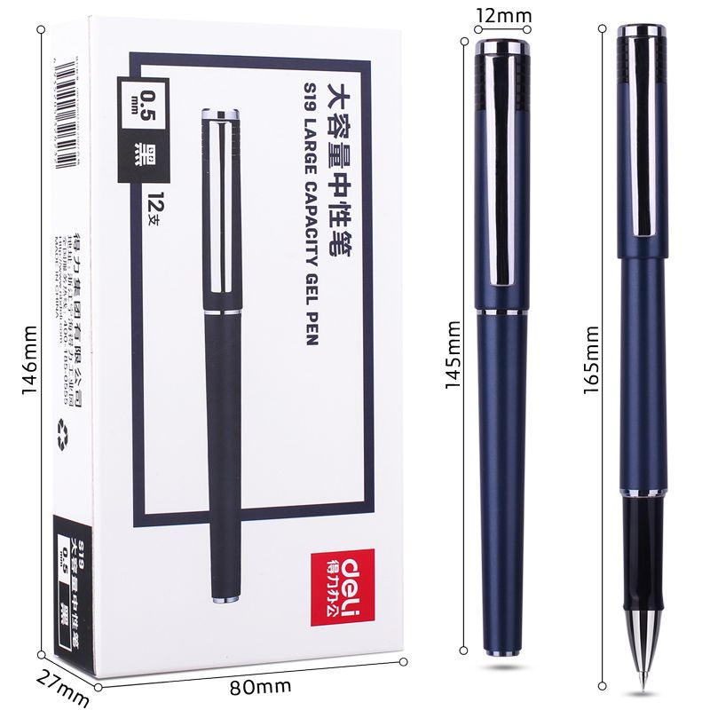 得力S19辦公大容量中性筆0.5mm子彈頭(黑)