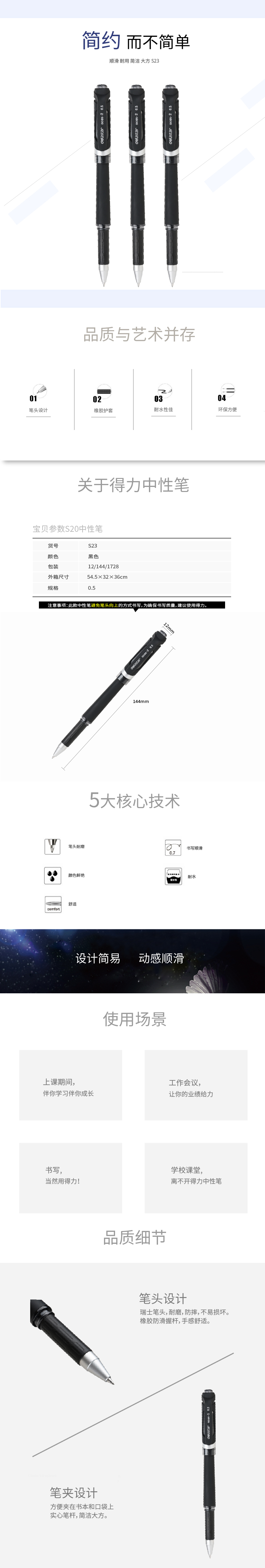 得力S23中性筆0.5mm子彈頭(黑)(支)