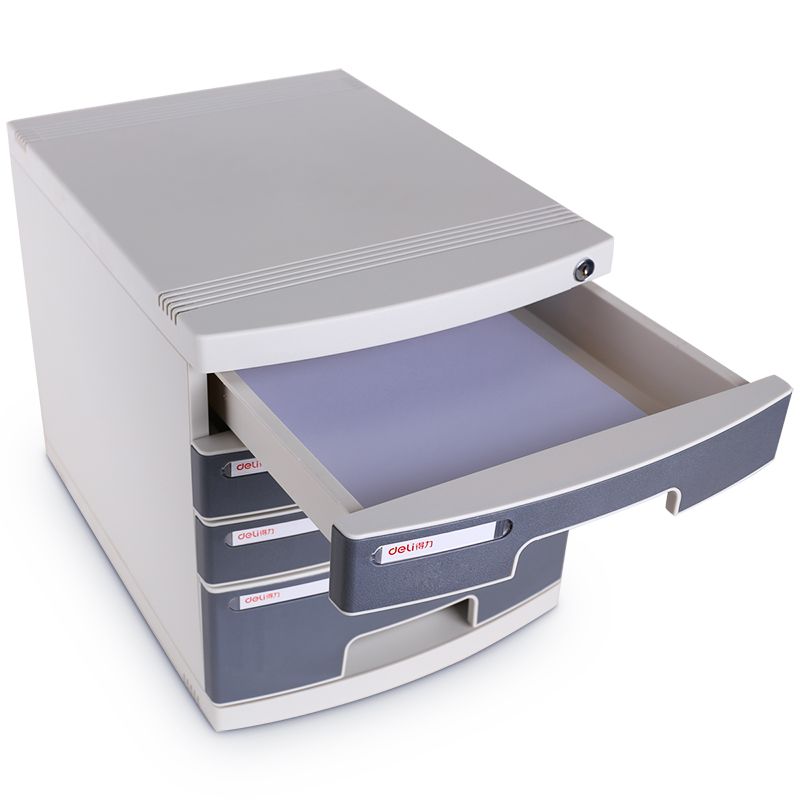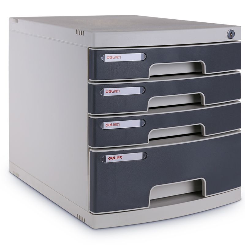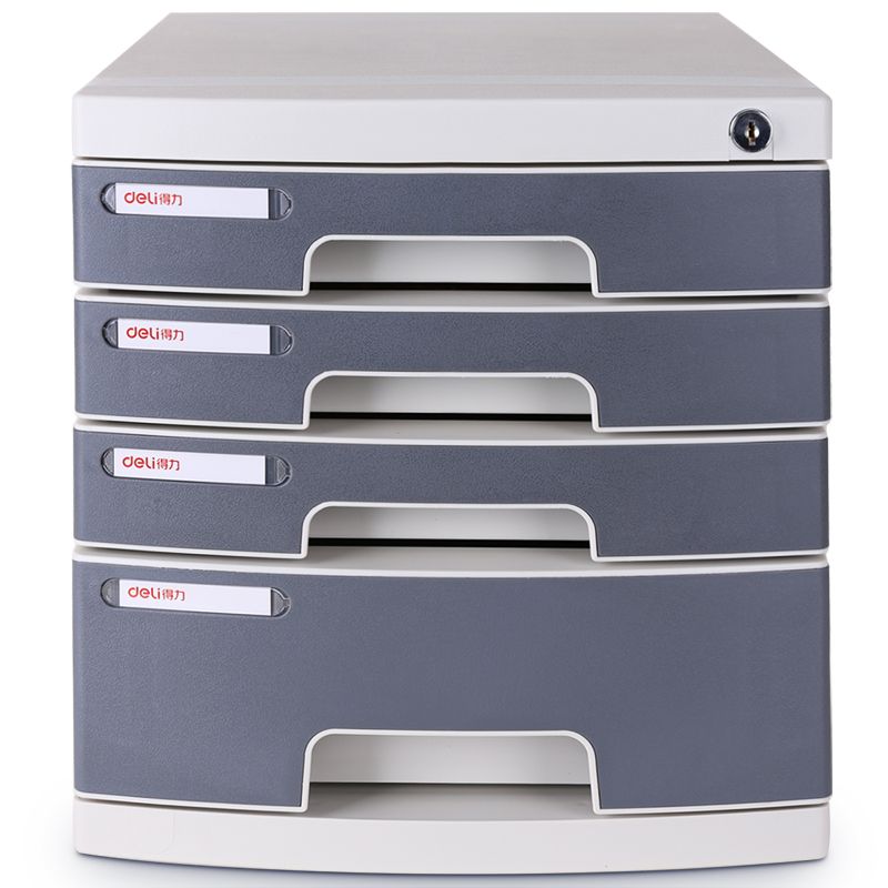 得力(deli)8854 四層帶鎖手拉桌面文件柜 帶索引標簽抽屜資料收納柜