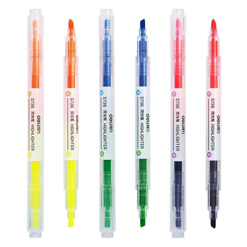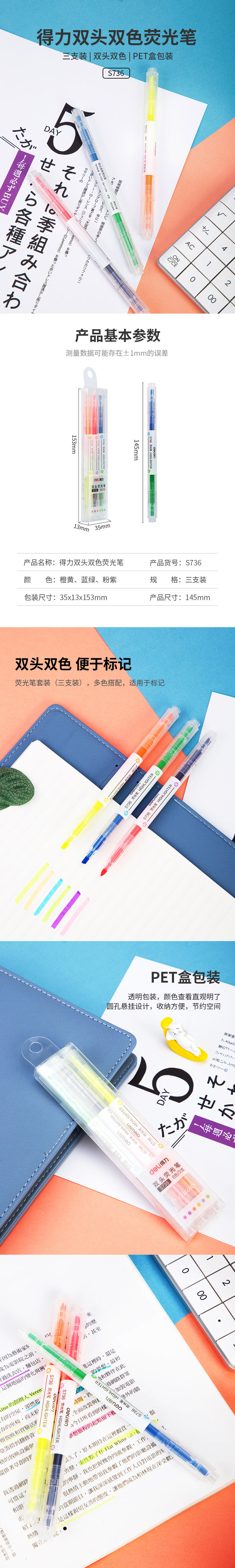得力S736雙頭雙色熒光筆(混)(3支/盒)
