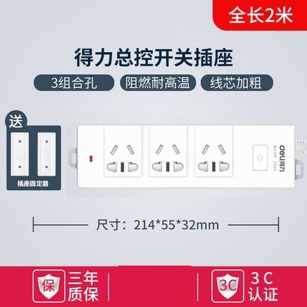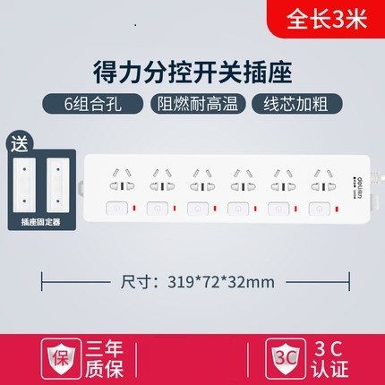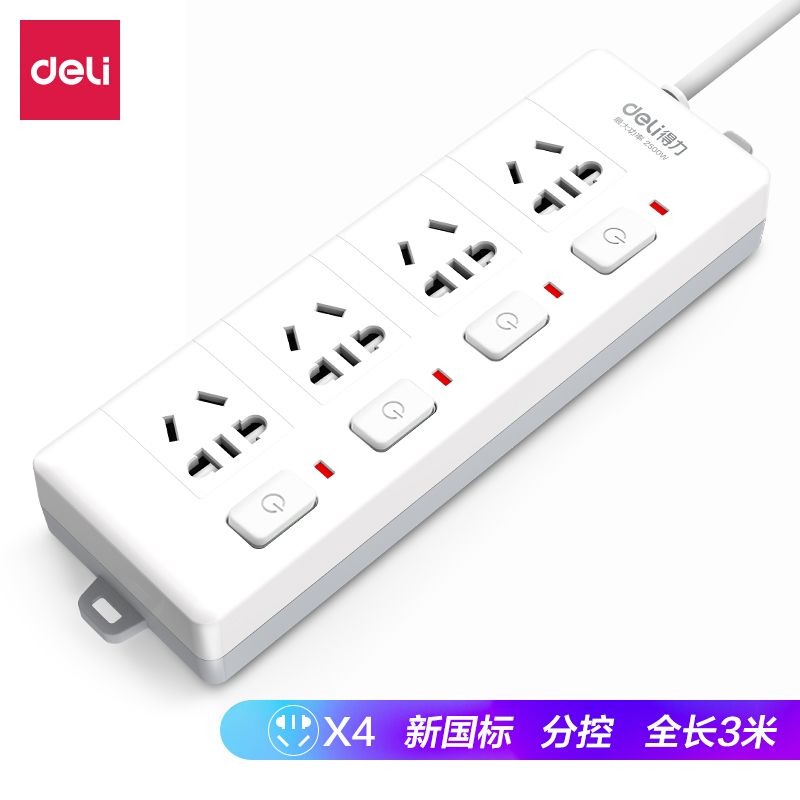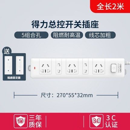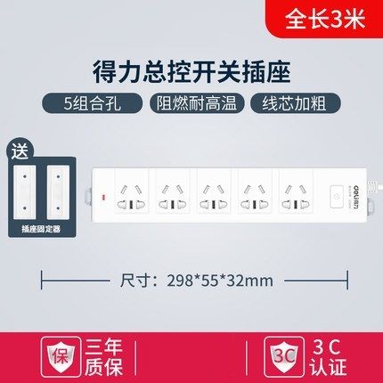得力拖線板面板插排插接線板多孔電源家用宿舍延長線 18276 18273 18274 18251 18252 18253 18254 3985 3969 3998 3980