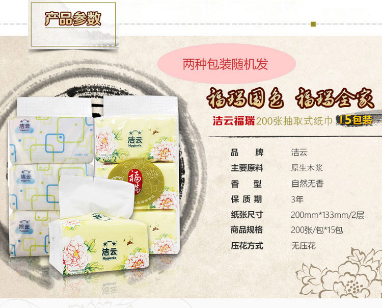 潔云(Hygienix) 136108國色塑包面紙-200抽(小幅) 抽紙 潔云抽紙 紙巾 衛(wèi)生紙