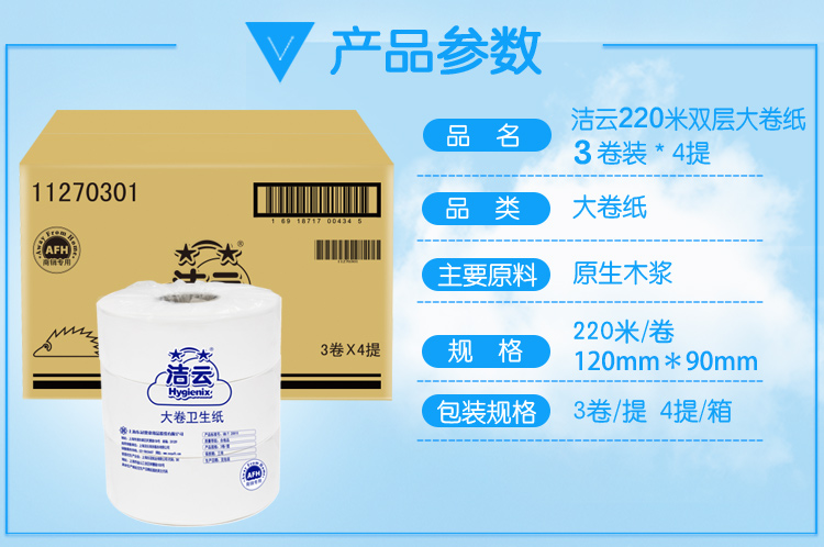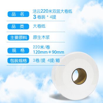 潔云(Hygienix)衛生紙 商用大卷紙2層220米大盤紙 *12卷 廁紙(整箱銷售) 紙巾 大卷紙