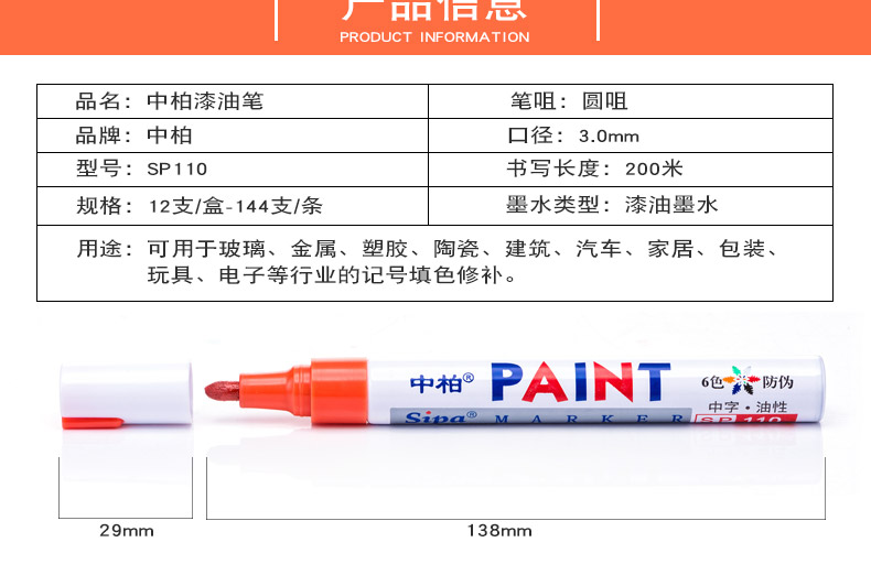 中柏油漆筆SP110線幅3.0mm輪胎筆不易掉色油性記號筆DIY畫鞋子涂鴉黑色勾線筆 油漆筆