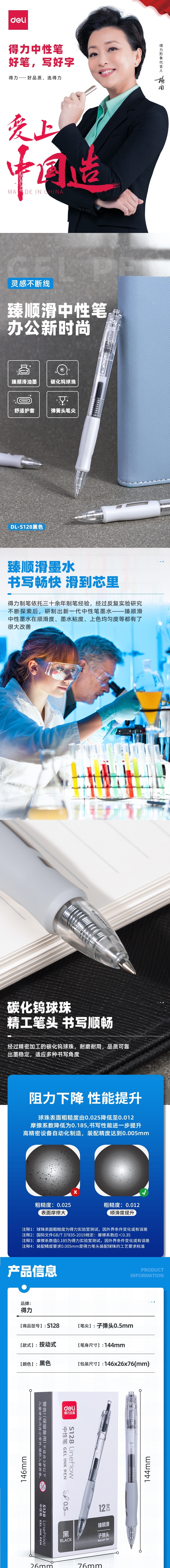 得力S128臻順滑辦公中性筆0.5mm彈簧頭(黑)(支 水筆 按動水筆
