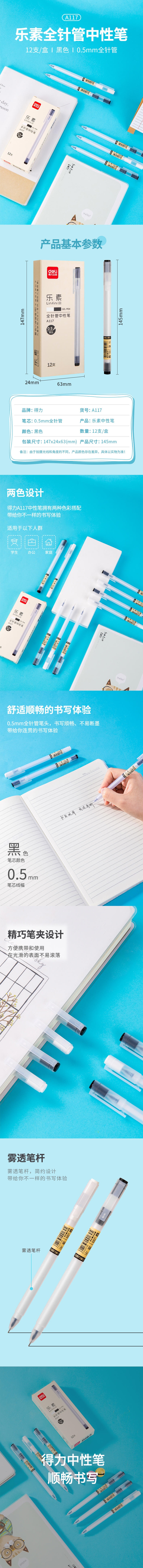 得力A117中性筆0.5mm全針管(黑) 水筆