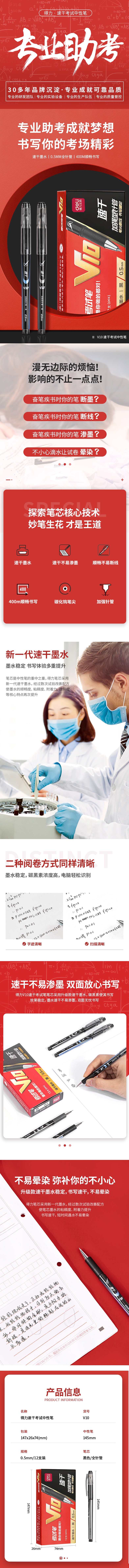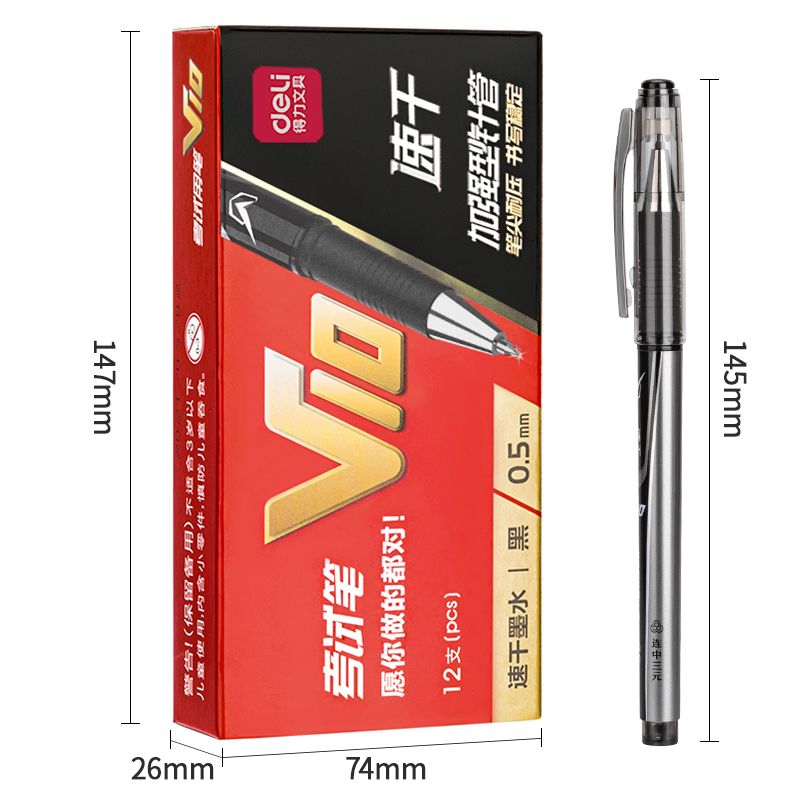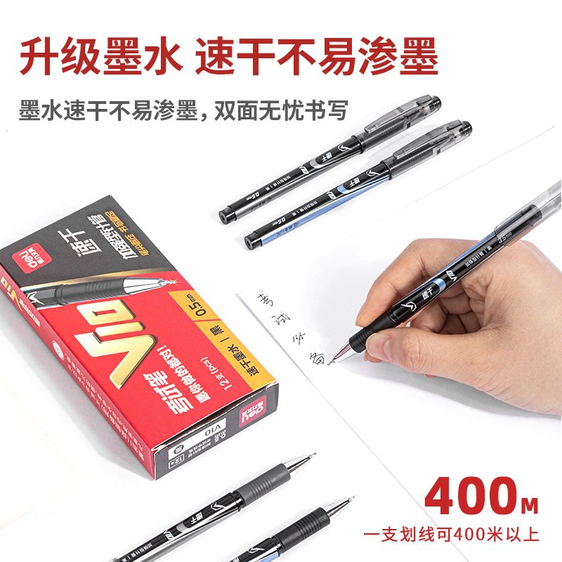 得力V10考試中性筆速干順滑0.5mm加強型針管(黑)(支) 水筆