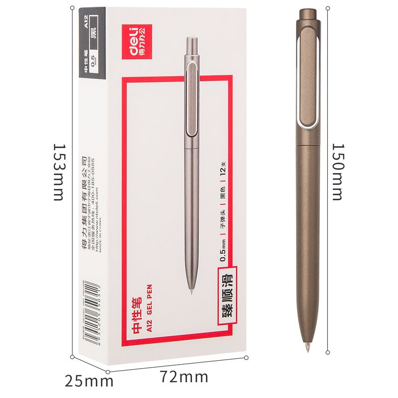 得力A12樂素金屬中性筆0.5mm子彈頭(臻順滑) 水筆 中性筆