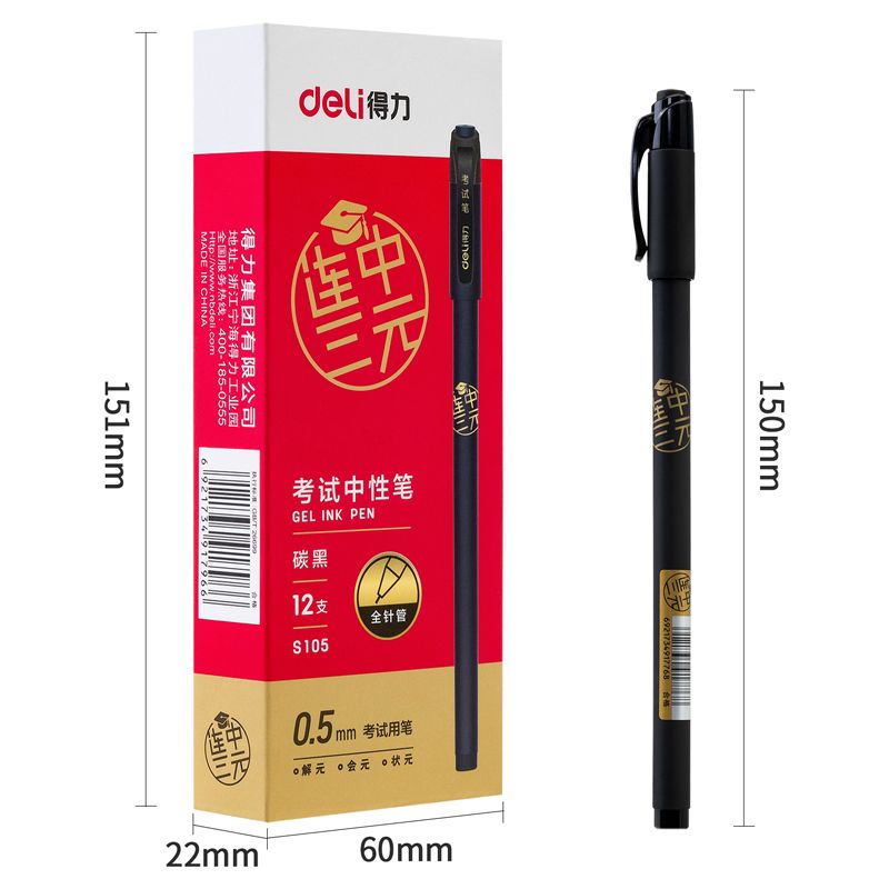 得力S105考試中性筆0.5mm全針管(黑) 水筆 中性筆