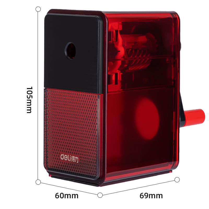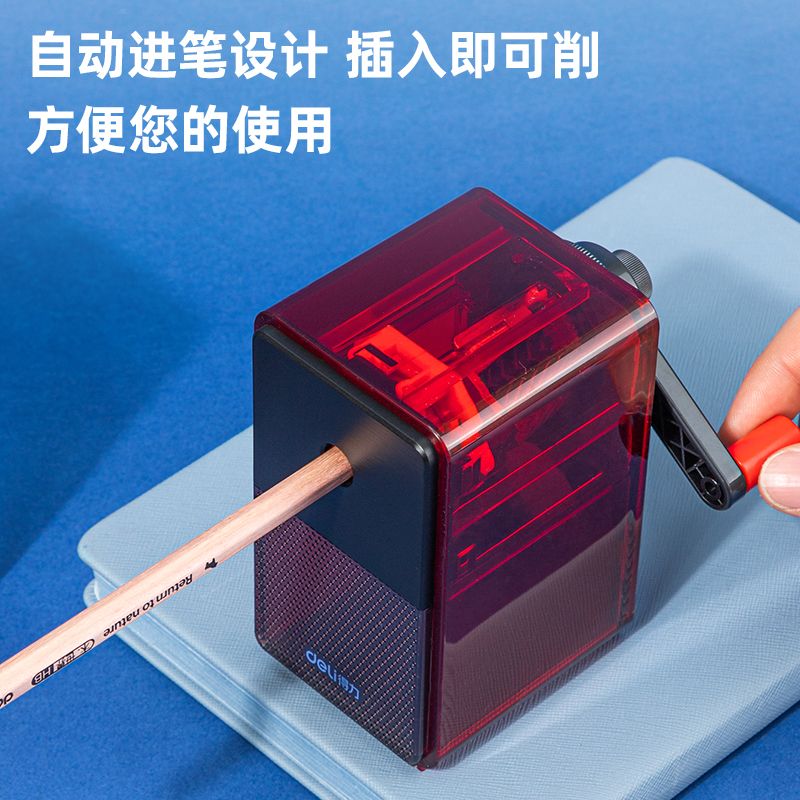 得力71168手搖透明削筆機(透明紅 透明藍) 卷筆刀