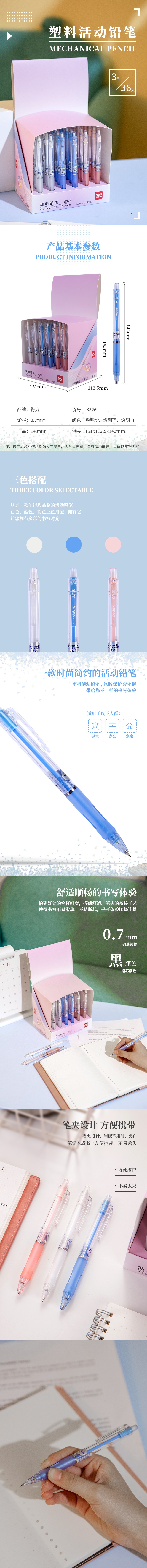 得力S326 s325 活動鉛筆0.7MM(混) 自動鉛筆 0.5mm