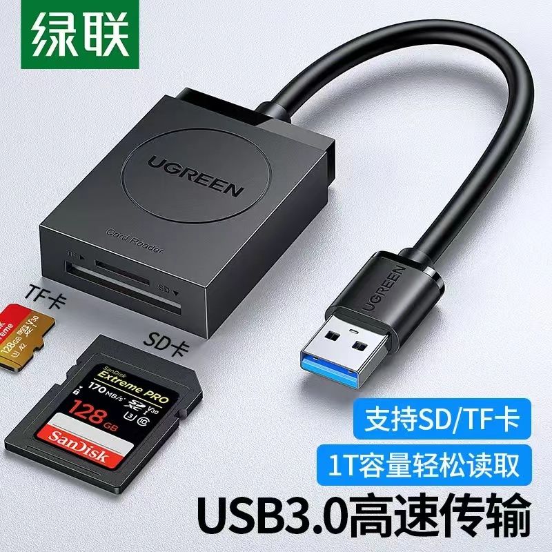 綠聯 USB3.0高速讀卡器 SD/TF二合一多功能讀卡器 適用手機單反相機行車記錄儀監控存儲內存卡讀卡器20250