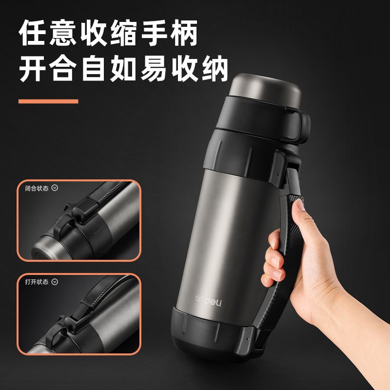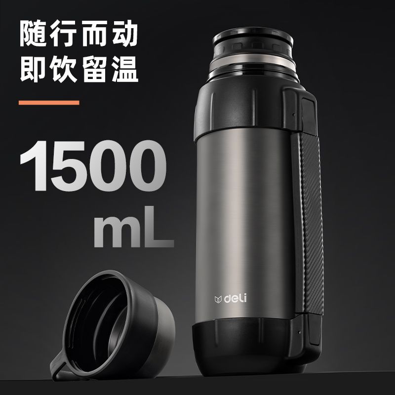 得力LL106-旅行壺-304不銹鋼1.5L-深灰(深灰)(1個/彩盒) 保溫壺保溫杯 水壺