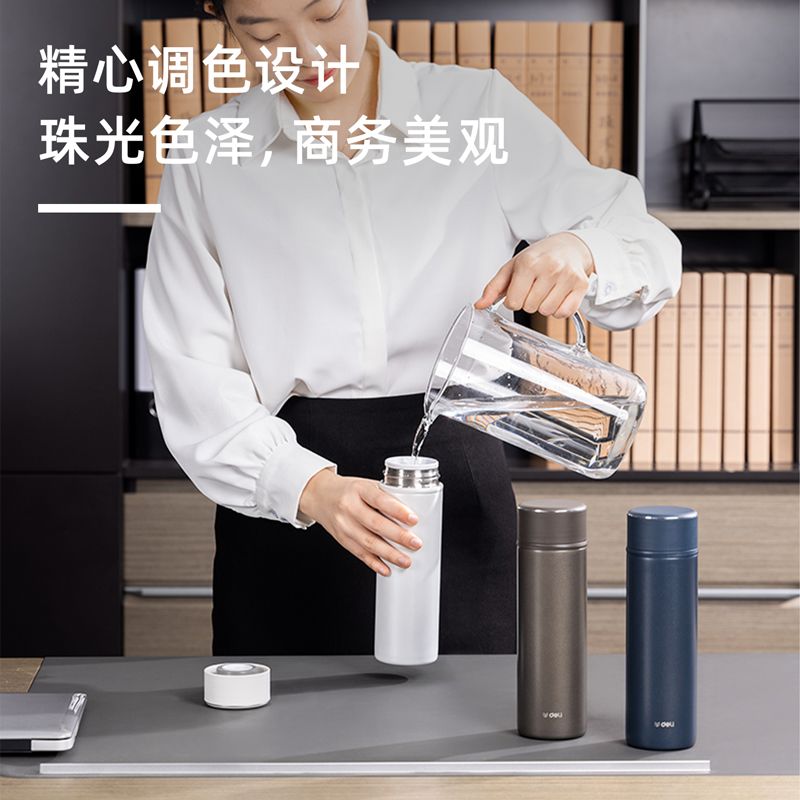 得力LL601-BGY商務保溫杯(500ml)(灰)(個) 保溫杯 水杯 水壺 杯子