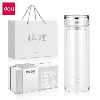 得力LL504雙層玻璃杯(300mL)(商務禮盒)(透明)(個) 水杯 杯子