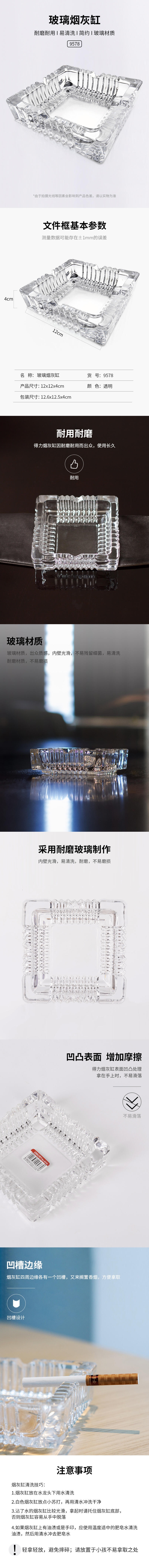 得力玻璃煙灰缸(透明)9578 9579 9580