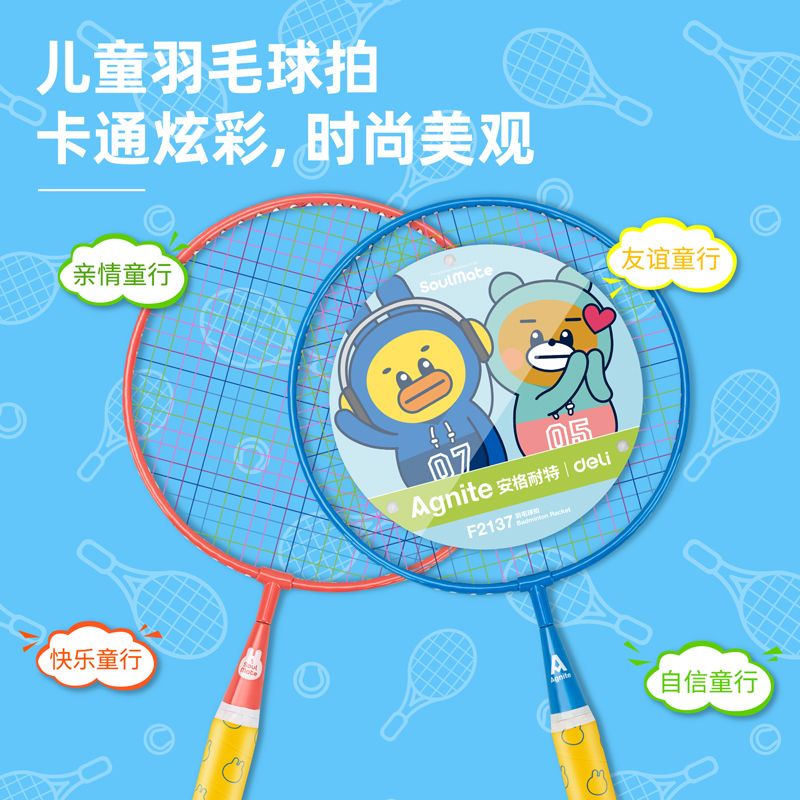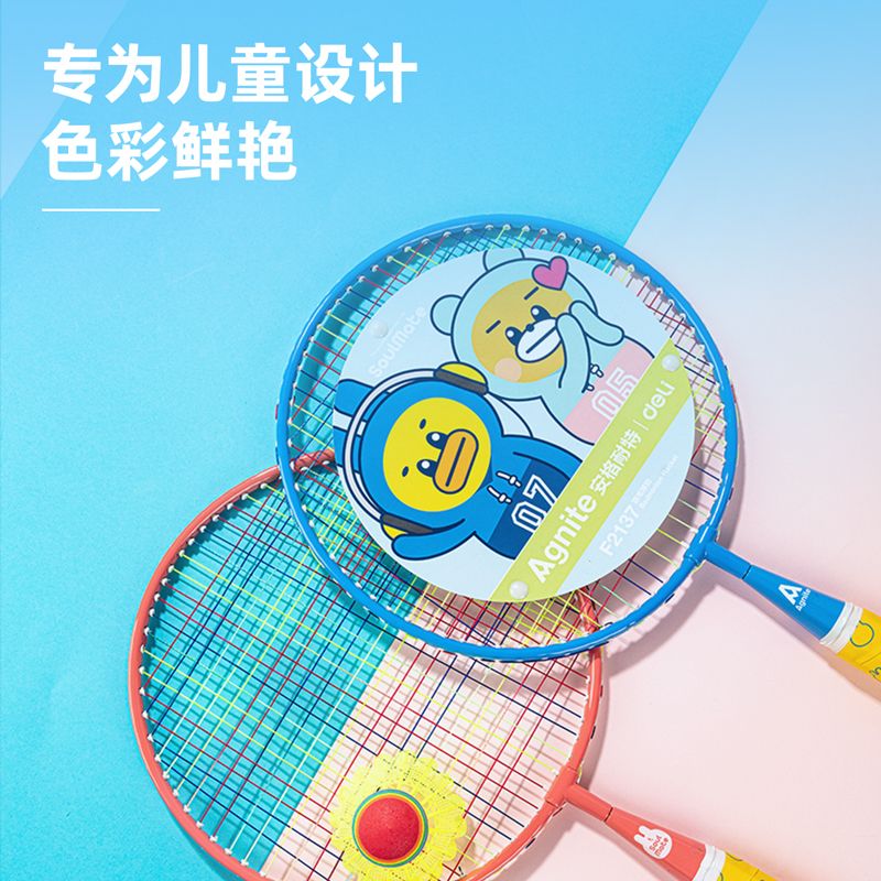 得力F2137兒童羽毛球拍(2支/付)(帶兩球)(藍(lán)+粉) 安格耐特