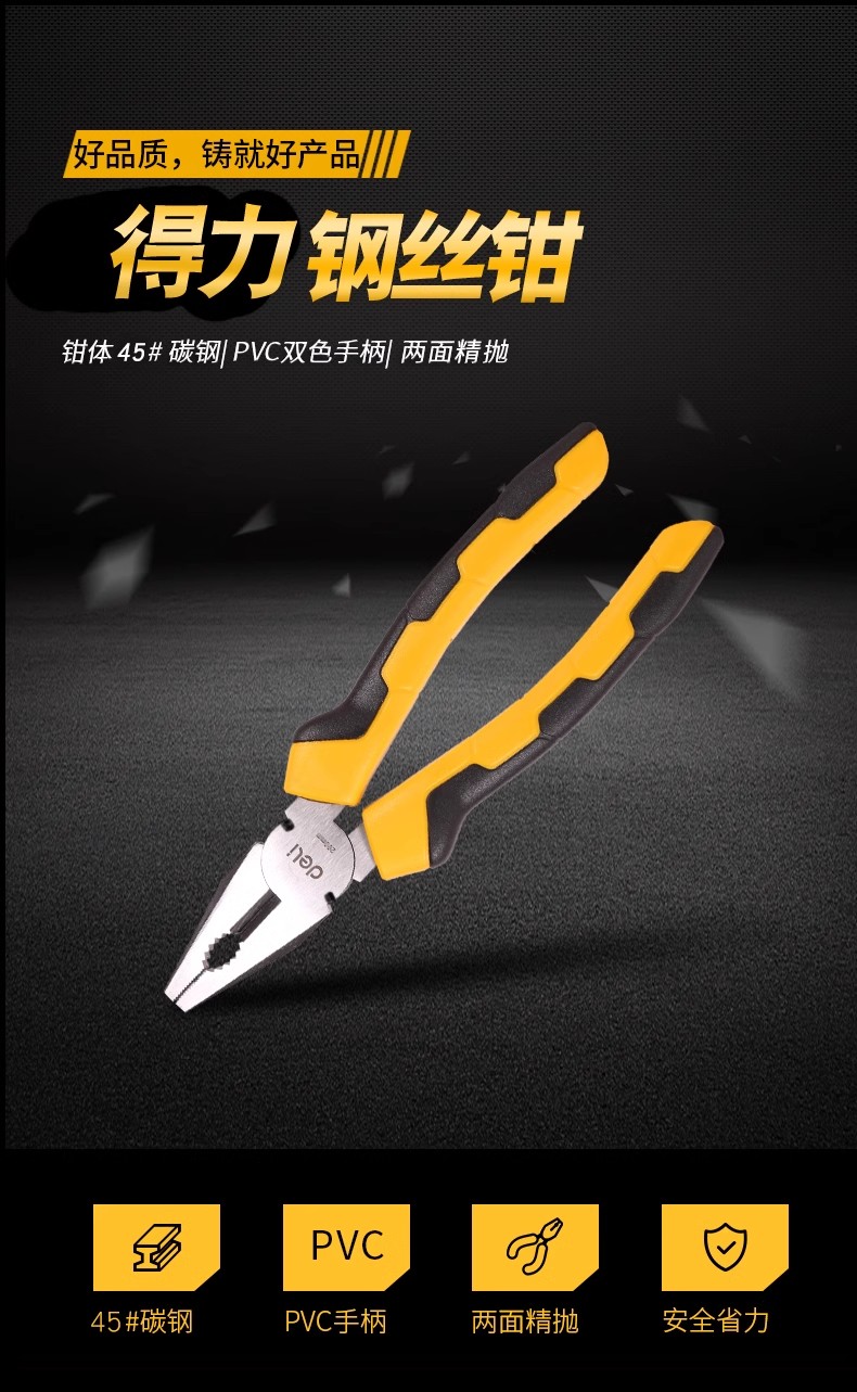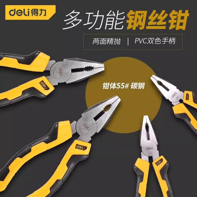 得力鋼絲鉗6寸7寸8寸克絲鉗老虎鉗平口鉗子DL2006 DL2007 DL2008