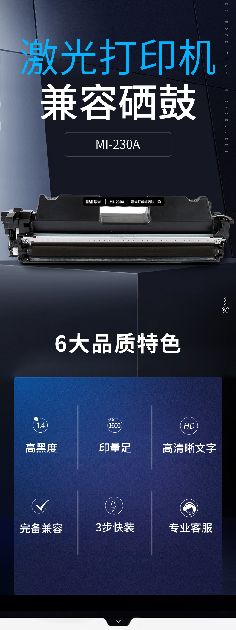 悠米30A粉盒 HP CF230A 30X大容量232A成像鼓203dw 227硒鼓 MI-230A帶芯片單支裝硒鼓--帶芯片裝機可用悠米硒鼓