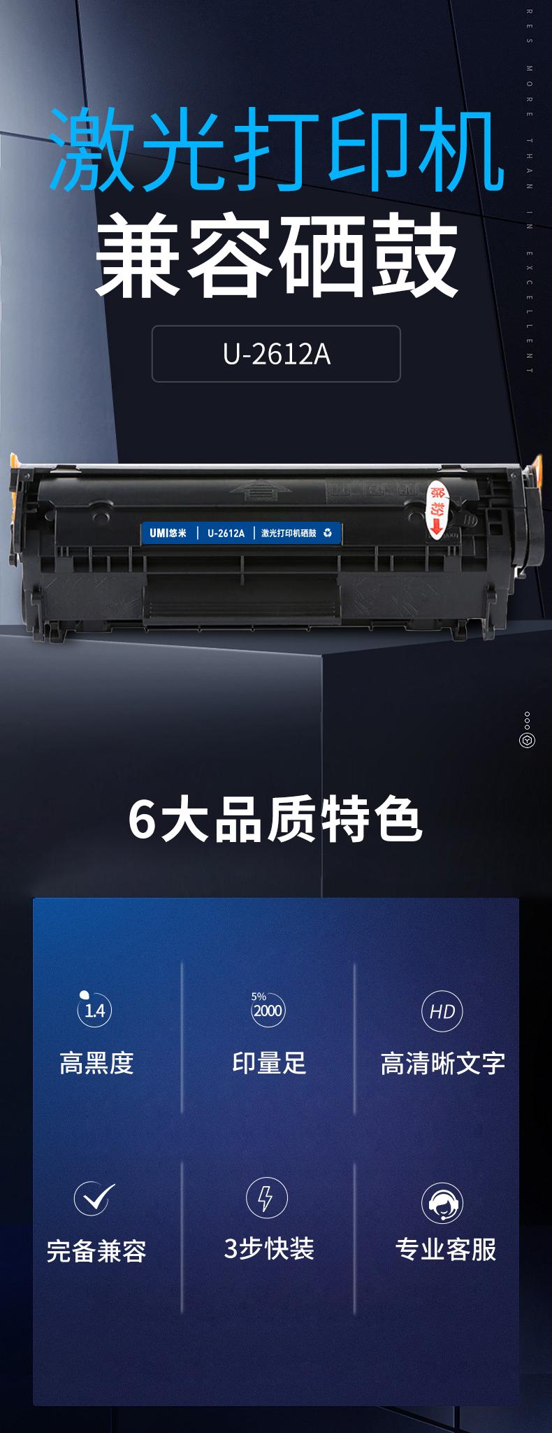 悠米 2612A大容量熱銷爆款單支裝硒鼓 適用hp1020 m1005 HP1010 Q2612A LBP2900 12a批發(fā)悠米硒鼓dyhc
