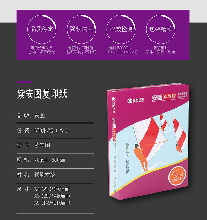 安興紙業(yè) 紫安圖 A5 70g 80g 10包 雙面打印 傳真紙 復(fù)印紙批發(fā) A5復(fù)印紙